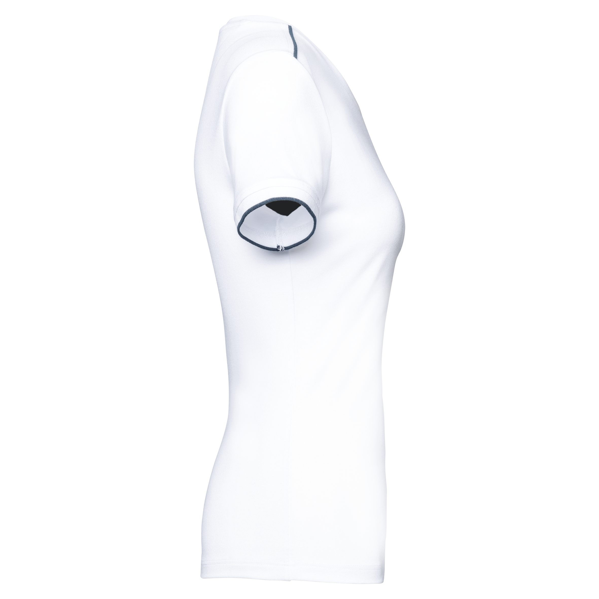 65% polyester / 35% coton peigné. Tissu jersey. Lavable à 60°C. Traitement antiboulochage. Encolure ronde avec élasthanne. Passepoil contrasté intérieur col et épaules. Finition bas de manches |